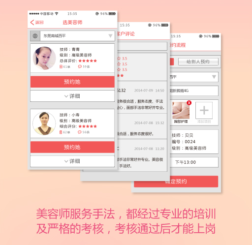 2、為了保障您的合法權益,本網站將不定期對美容師資質及提供的美容服務進行考核,但您理解考核不可能每時每刻都在進行。所以,在確定預約前,請務必仔細閱讀美容師與服務項目的宣傳資料,并對其做出準確判斷。本平臺對美容師個人提供的宣傳和承諾并不承擔法律上的責任。